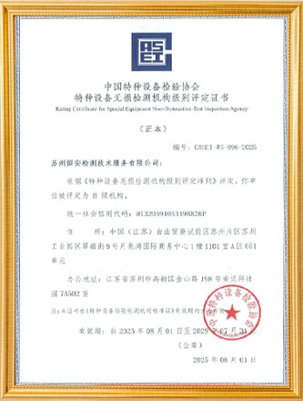 特种设备无损检测机构级别评定证书